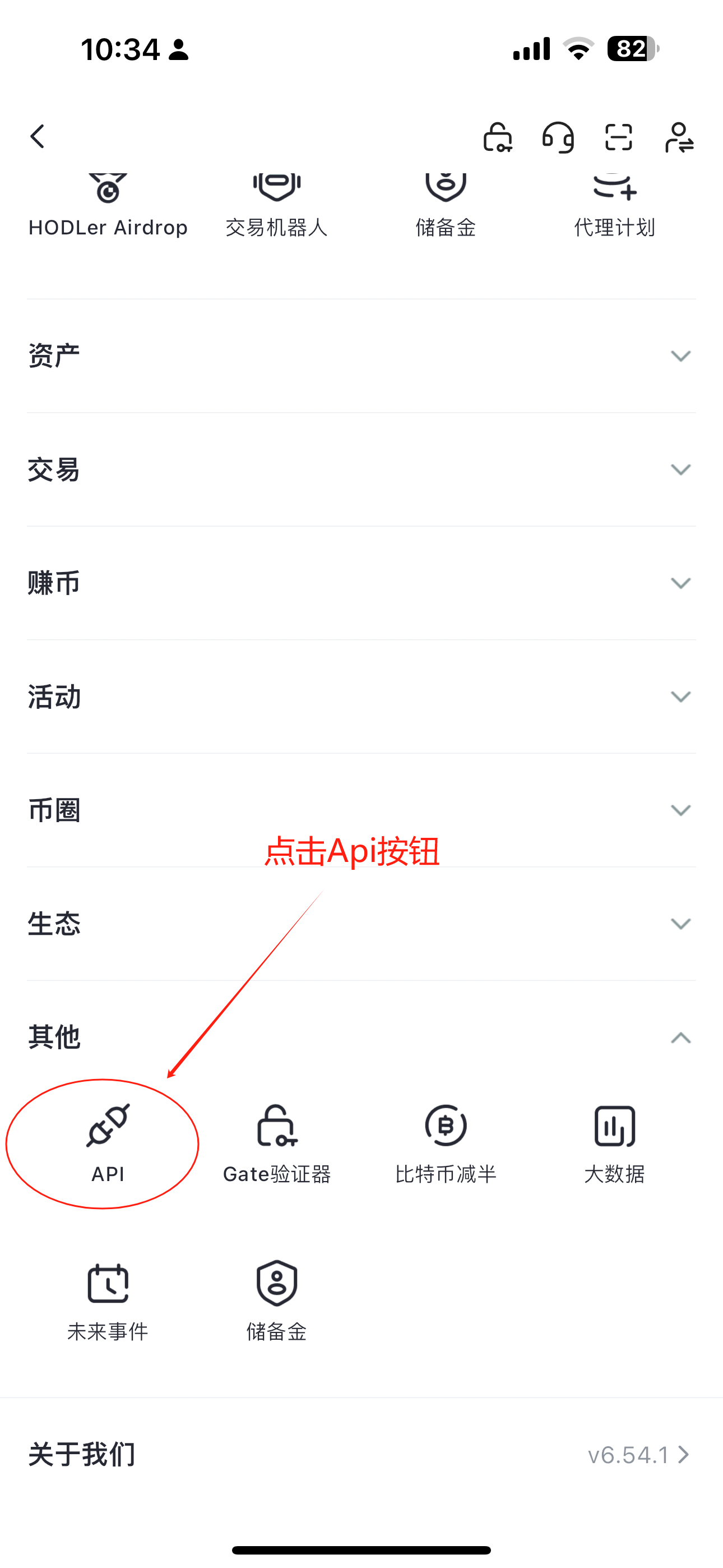 2. 在展开的菜单中，选择 ​**​“API”​** 进入API管理界面。